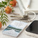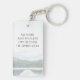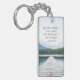 Inspirational quote keychain depicts a beautiful scene of a pier on the water with trees and mountains, and features Bible verse Psalm 84:2; My soul longs, even faints for the courts of the Lord.