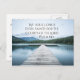 Inspirational quote custom postcard depicts a beautiful scene of a pier on the water with trees and mountains, and features Bible verse Psalm 84:2; My soul longs, even faints for the courts of the Lord. The back greeting/prayer can be modified or deleted for a blank card.