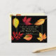 Inspirational quote Thanksgiving scripture postcard depicts beautiful fall leaves surrounding Bible Verse Psalm 95:2, "Let us come into his presence with thanksgiving;!"-