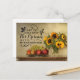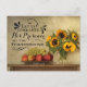Inspirational quote Thanksgiving postcard depicts a beautiful still life with a vase of sunflowers and bowl of fruit. It features a portion of Bible Verse Psalm 95:2, "Let us come into his presence with thanksgiving." *