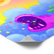 a psychedelic sky with a flying mouse, a star eating hippo, and a green checkered flamingo. Fun and colorful poster!