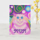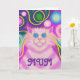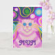 Groovy baby! A pink striped cat with swirling whiskers and a psychedelic rainbow patterned background. Greetings card with a pink, blue, green, purple and yellow customizable design for you to personalise with your own text, images and ideas. The text can easily be changed using the template provided or click the 'Customize It' button to make further alterations. An original digitally enhanced coloured pencil drawing by Jess Perry.
