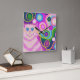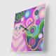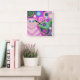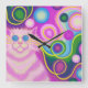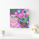 Groovy baby! A pink striped cat with swirling whiskers and a psychedelic rainbow patterned background. Wall clock with a pink, blue, green, purple and yellow customizable design for you to personalise with your own text, images and ideas. Other style options available. Image created from an original digitally enhanced coloured pencil drawing by Jess Perry.