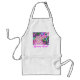 Groovy baby! Apron with a pink striped cat with swirling whiskers and a psychedelic rainbow patterned background and the words 'Groovy Chef' written in pink. A pink, blue, green, purple and yellow customizable design for you to personalise with your own text, images and ideas. Available in all style options. An original digitally enhanced coloured pencil drawing by Jess Perry.