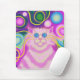 Groovy baby! A pink striped cat with swirling whiskers and a psychedelic rainbow patterned background. Mousepad with a pink, blue, green, purple and yellow customizable design for you to personalise with your own text, images and ideas.An original digitally enhanced coloured pencil drawing by Jess Perry.