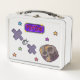 This is a standard metal lunchbox that appears to work just fine. We designed this box ourselves with an uploaded photo and custom text on the front and back. It looks absolutely beautiful except the front of the lunchbox is not centered like it shows in the photo. The print borders don't align with the inset flat part of the box where the preview photo online showed it perfectly centered in there. The back looks nice and centered though.