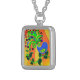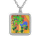 Psychedelic Abstract Bird Silver Plated Necklace