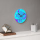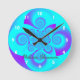 Psychedelic teal and purple clock. This eyecatching trendy art clock makes a perfect statement for your kitchen or lounge wall. Personalize as a gift by adding a name.