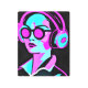Pink, teal and black abstract AI art. Woman wearing headphones listening to music. generativecontent