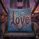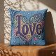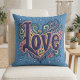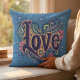 Psychedelic Boho Love Lettering with Floral Throw Pillow