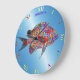 Psychedelic Colorful Exotic Abstract Fish Drawing Large Clock