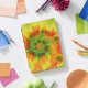 I was super excited when I got my cover in. It is attached by a magnet across the edge. I don’t think it will be very protective but it is very cute. I’m going to keep my iPad in a sleeve and use this face cover while I have it out. It folds to create a tilt for better viewing and to keep the iPad at a slight angle for typing. The colors are bright and it is fun. I’ve really enjoyed it. The personalization looks like amazing. It is the same color as the picture and is the same brightness. Well done! Very nice.