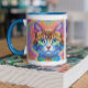 Cool unique AI generated cat Goddesses. A psychedelic cartoon rendering of artsy cats with vivid eyes.