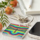 Square single-sided acrylic keychain with an image of a green and red tie-dyed dragonfly on rainbow tie- dye. See the entire Psychedelic 60s Keychain collection in the PARTY FAVORS section.