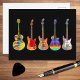 Electric, acoustic and semi acoustic guitars adorn this funky psychedelic postcard in vibrant pop art colours. Any guitarist or musician will tell you that you can never have to many guitars. This fun colourful guitar postcard celebrates the energy and variety of this wonderful musical instrument. The perfect gift for guitarists, musicians and music lovers. Psychedelic guitar pop art by artist Catherine Sweetman
