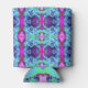 Psychedelic Green and Blue Hibiscus Pattern Can Cooler