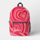 Psychedelic Hearts Calligraphy Script Name Pinks Printed Backpack