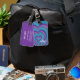 Psychedelic Hearts Calligraphy Script Name Purple Luggage Tag