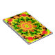 This psychedelic kaleidoscope flower design features a green, orange, and red. Vibrant trippy visuals for the modern hippie or anyone who loves bright colors!