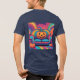 This is a Psychedelic Jack O Lantern Sofa T-Shirt. The digital art features a cute jack o lantern sofa. The jack o lantern seems to be sitting on the sofa yet a part of the sofa. The picture also has rainbow arcs, two pumpkins and pretty pink clouds. The t-shirt is a new triblend navy blue t-shirt.
