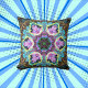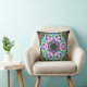 Psychedelic Mandala Flower Blue Yellow and Pink Throw Pillow