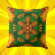 Psychedelic Mandala Flower Green Orange and Yellow Throw Pillow