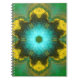 Psychedelic Mandala Flower Teal Yellow and Green Notebook