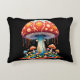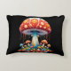 This vibrant, digital illustration features a large central mushroom with a striking red cap decorated with yellow and orange circular patterns, evoking a psychedelic vibe. The mushroom’s white stem drips with blue, creating a melting effect that adds a surreal touch. Surrounding the central mushroom are smaller mushrooms in a variety of colors, including blue, pink, orange, and green, each featuring unique patterns and dots. The solid black background enhances the vivid colors of the mushrooms, while floating spheres in the top corners, dripping with matching colors, further amplify the whimsical atmosphere. This striking composition is filled with bright, contrasting colors and intricate details, offering a visually imaginative experience.
