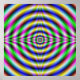 A digital abstract fractal image with a psychedelic neon eye design in pink yellow, blue and green.