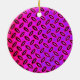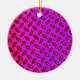 A repetitive pattern spreads across a purple & pink psychedelic background on this round ornament. Spin it for a fun hypnotic effect!