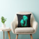 Psychedelic Pixie Cap Glowing Cyan Mushroom Throw Pillow