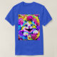 Psychedelic Rainbow Cat in a Blooming Garden of Ro T-Shirt