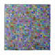 This product is made from an eye-catching, multicolored textured mosaic square tiles pattern in a vivid blue with regions of red, yellow, neon green, and other rainbow colors, and swirls of "purple haze" randomly dispersed throughout this unique psychedelic design.