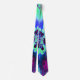 Psychedelic Retro Green and Blue Hibiscus Flower Neck Tie