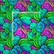 Psychedelic Retro Pattern Blue Green Teal Purple Fabric