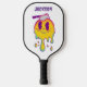 psychedelic smiley and skull custom name picklebal pickleball paddle