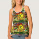 Women's All-Over Print Racerback Tank Top, White Piping, S