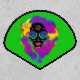 A groovy psychedelic sugar skull graphic you can customize. You may choose any background color you like (shown here in bright green) as well as any color you want for the skull face (shown here in black). There are also 14 image filters to play with for different effects, and 12 stitching colors (shown here in black) to choose from. Have fun making this patch truly unique to you.