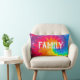 Family text on psychedelic tie-dye abstract in a neon rainbow color swirl.