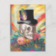 Smiling skull in a top hat with psychedelic adornments. A very unique postcard for a very unique individual, very far out and very very old school. Take time to smell the flowers...and smile - or else...