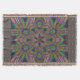 A quality printed throw has its advantages. This is a much finer weave throw than its loopier cousins, and though lighter, it is worth the investment for custom room accessorizing. The back is much prettier than the typical brown, and the fringe on the long sides very vivid, the selvage nicely done. Before photographing, I washed the throw in cold water, delicate, with a thicker woven throw the same size. On tumble dry low, this throw was dry in half the time as the other. This is a very practical quality if you use throws for furniture covers or to wrap up in frequently. The sleekness of the fabric makes it a great layer for accenting or protecting without the feeling of sitting on too much stuff. Perfect for napping or when you feel a light chill coming on. The color printing is beautiful and on this fabric, matched the design and color of my Photoshop image. This is an advantage for blending room fabrics and colors. The fringe on the short sides prints the colors from the design image and therefore varies from the side fringe. I streaked a white fractal line through the plaid pattern to give the illusion of weaving. This printed as crisp as an illusory thread, and put some white in the short side fringe, showing another advantage of print vs loomed- for artistic purposes, line lines, detail, and color integrity can be planned and preserved. My loomed throws have color limitations and more of a needlepoint texture. Print throws reproduce an exact image. The throw felt a little stiff straight out of the package, but this went away in the first delicate wash. Of course I searched the wash water for ink or bleeding and there was none.