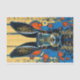 🖤 Psychedelic Rabbit Hare Tissue Paper. This tissue paper features a mesmerizing and colorful design of a hare, adorned with intricate dots and patterns in vibrant shades of blue, orange, and yellow. The dynamic background of abstract shapes and concentric circles enhances the trippy, psychedelic feel of the artwork. Perfect for adding a bold and unique touch to furniture, plant pots, and various mixed media crafts, this tissue paper is available in both original and flipped designs, allowing for symmetrical decorating on paired surfaces like cupboard doors.. A third design is also available where both left and right images are featured. Each of my designs is original, boasting high-resolution imagery making it versatile for a range of Zazzle products.