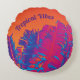 Feel the Tropical Vibes of this round psychedelic pop art round pillow with bright multicolored shades of orange, pink, blue and purple palm fronds. These pillows are fun, vibrant and colorful! Nature with a playful pop of vibrant color. Personalize with a Name or your own text.