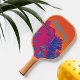 Feel the Tropical Vibes of this psychedelic pop art Pickleball paddle with bright multi color shades of orange, pink, blue and purple palm fronds. This paddle is fun, vibrant and colorful! Nature with a playful pop of vibrant color. Personalize with a Name or your own text.