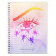 Psychedelic notebook with a creepy illustration inspired by eye dryness and pain plus psychic distress. Features a female eye with long eyelashes and a strange pupil with white dots reminding of space. Ants are crawling out of the pupil, going across the eye and spreading all over the face. This trippy design is great for hippies who like horror art.