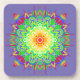 Psychedelic Zen Mandala Abstract Art Coaster in lime green, red, purple, blue and yellow.