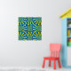Wheels with psychedelic patterns rotate in opposite directions in an abstract poster image of the illusory motion variety.