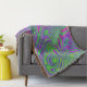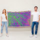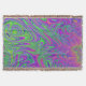 A quality printed throw has its advantages. This is a much finer weave throw than its loopier cousins, and though lighter, it is worth the investment for custom room accessorizing. The back is much prettier than the typical brown, and the fringe on the long sides very vivid, the selvage nicely done. Before photographing, I washed the throw in cold water, delicate, with a thicker woven throw the same size. On tumble dry low, this throw was dry in half the time as the other. This is a very practical quality if you use throws for furniture covers or to wrap up in frequently. The sleekness of the fabric makes it a great layer for accenting or protecting without the feeling of sitting on too much stuff. Perfect for napping or when you feel a light chill coming on. The color printing is beautiful and on this fabric, matched the design and color of my Photoshop image. This is an advantage for blending room fabrics and colors. The fringe on the short sides prints the colors from the design image and therefore varies from the side fringe. I streaked a white fractal line through the plaid pattern to give the illusion of weaving. This printed as crisp as an illusory thread, and put some white in the short side fringe, showing another advantage of print vs loomed- for artistic purposes, line lines, detail, and color integrity can be planned and preserved. My loomed throws have color limitations and more of a needlepoint texture. Print throws reproduce an exact image. The throw felt a little stiff straight out of the package, but this went away in the first delicate wash. Of course I searched the wash water for ink or bleeding and there was none.