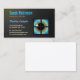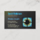 © Sunny Mars Designs. This business card features an iris of a striking blue eye looking through a window with a black frame against a dark background. Perfect for psychologists, optometrist or any other eyecare specialist.