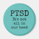 Say's "PTSD, it's not all in our head". As a PTSD/CPTSD batteler and survivor, I want people to educate themselves abot this life altering disorder. In colors of teal and black.